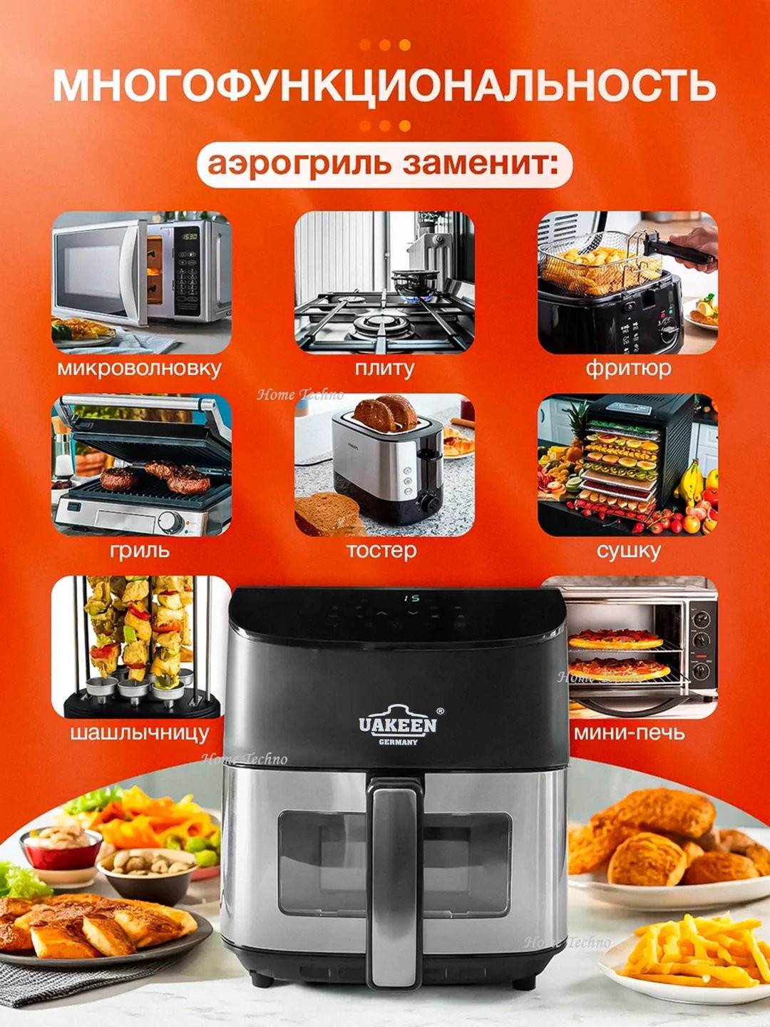 • 8 функций в одном устройстве — замена фритюрницы, гриля, духовки и тостера