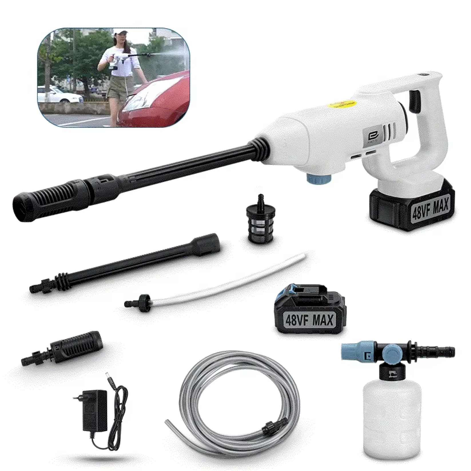 * 1. Аккумуляторная мойка высокого давления учитывает портативность и удобство, больше нет кабеля питания, работает от батареи большой емкости, что позволяет очищать все ваши открытые пространства и оборудование в любое время и в любом месте.