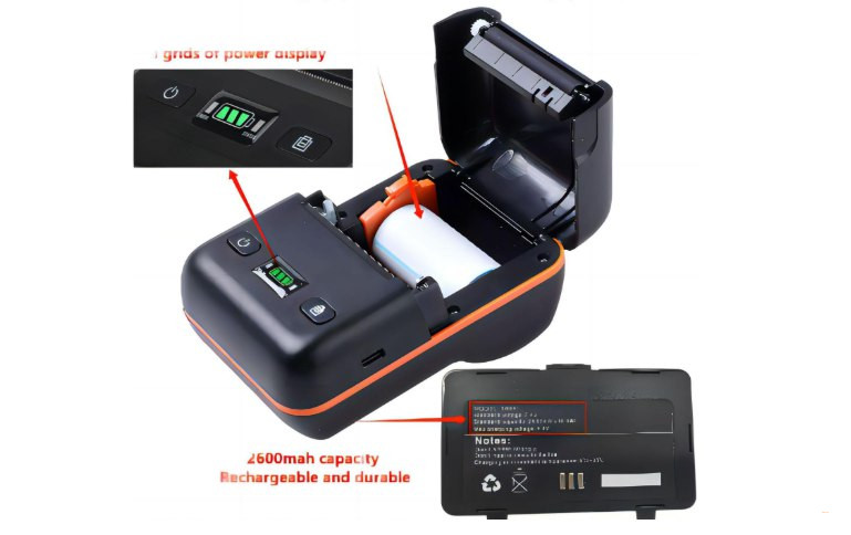 • Автономная работа — аккумулятор 2600 мАч для печати до 200 м