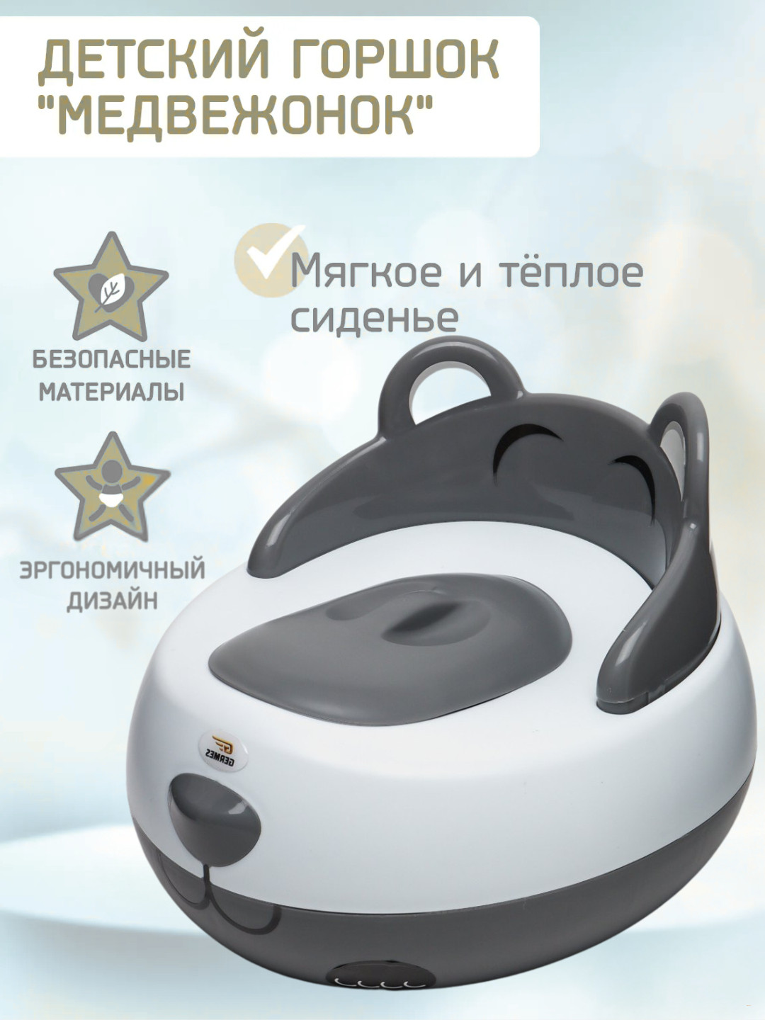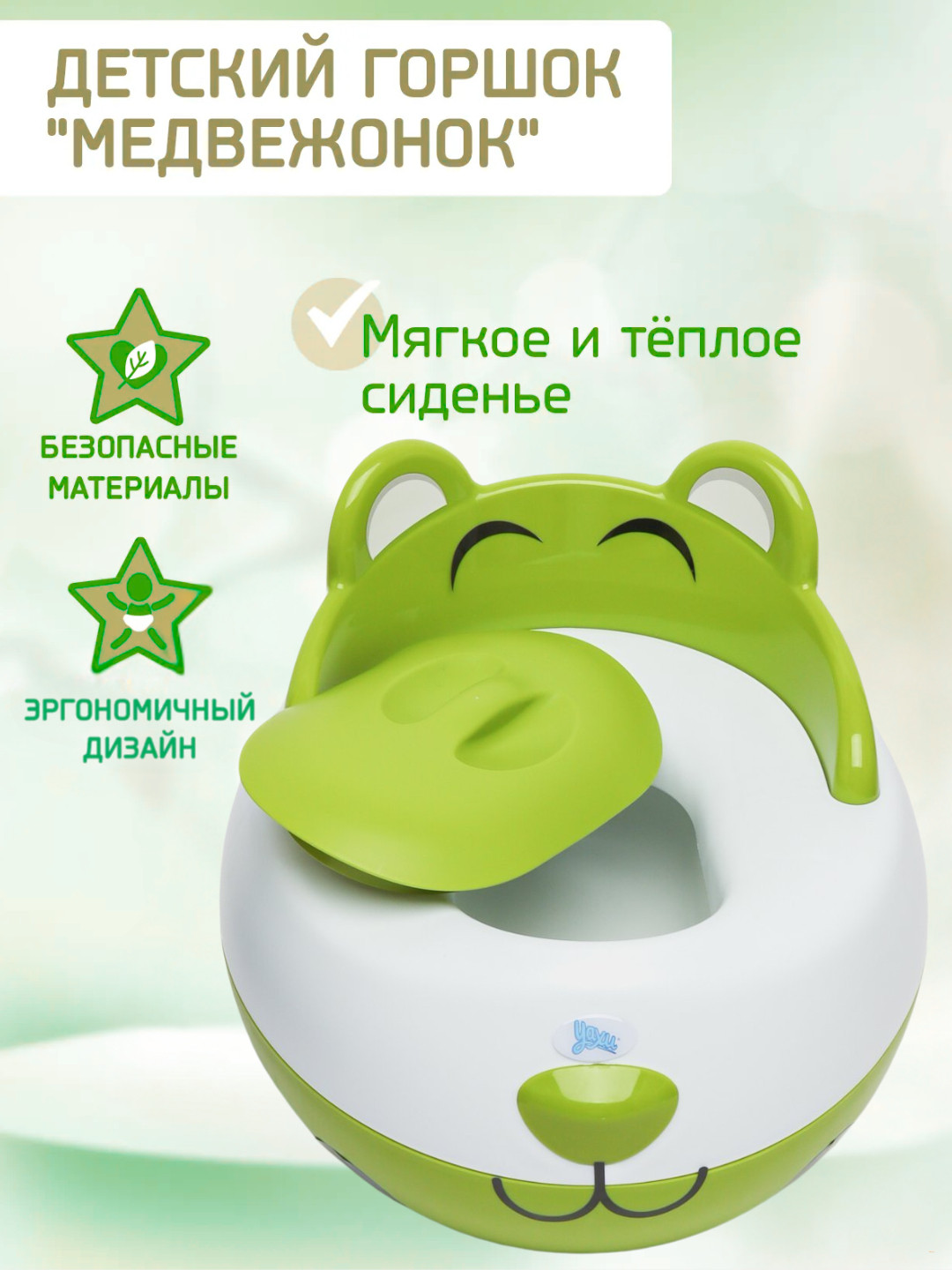 • Яркий дизайн — весёлый медвежонок с ушками и улыбкой для интереса ребёнка
