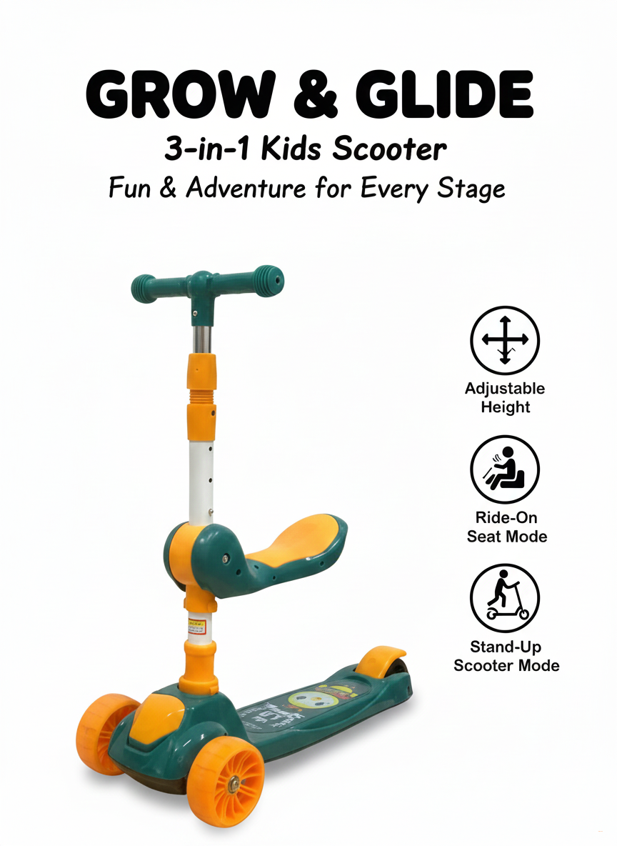 • Три пластиковых колеса — устойчивость и безопасность для первых поездок