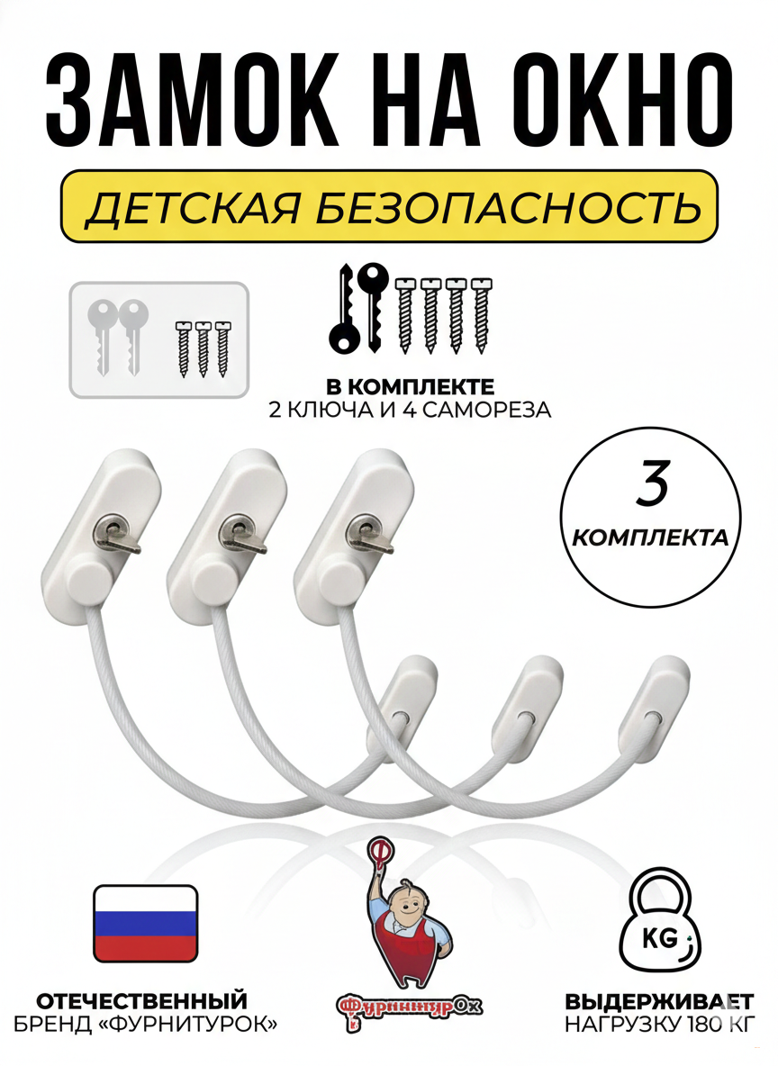 Детский замок-ограничитель на окно, набор 3 шт.