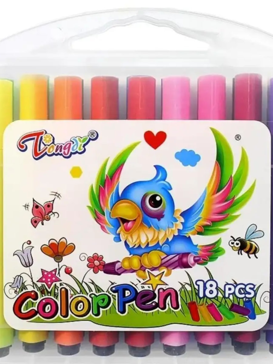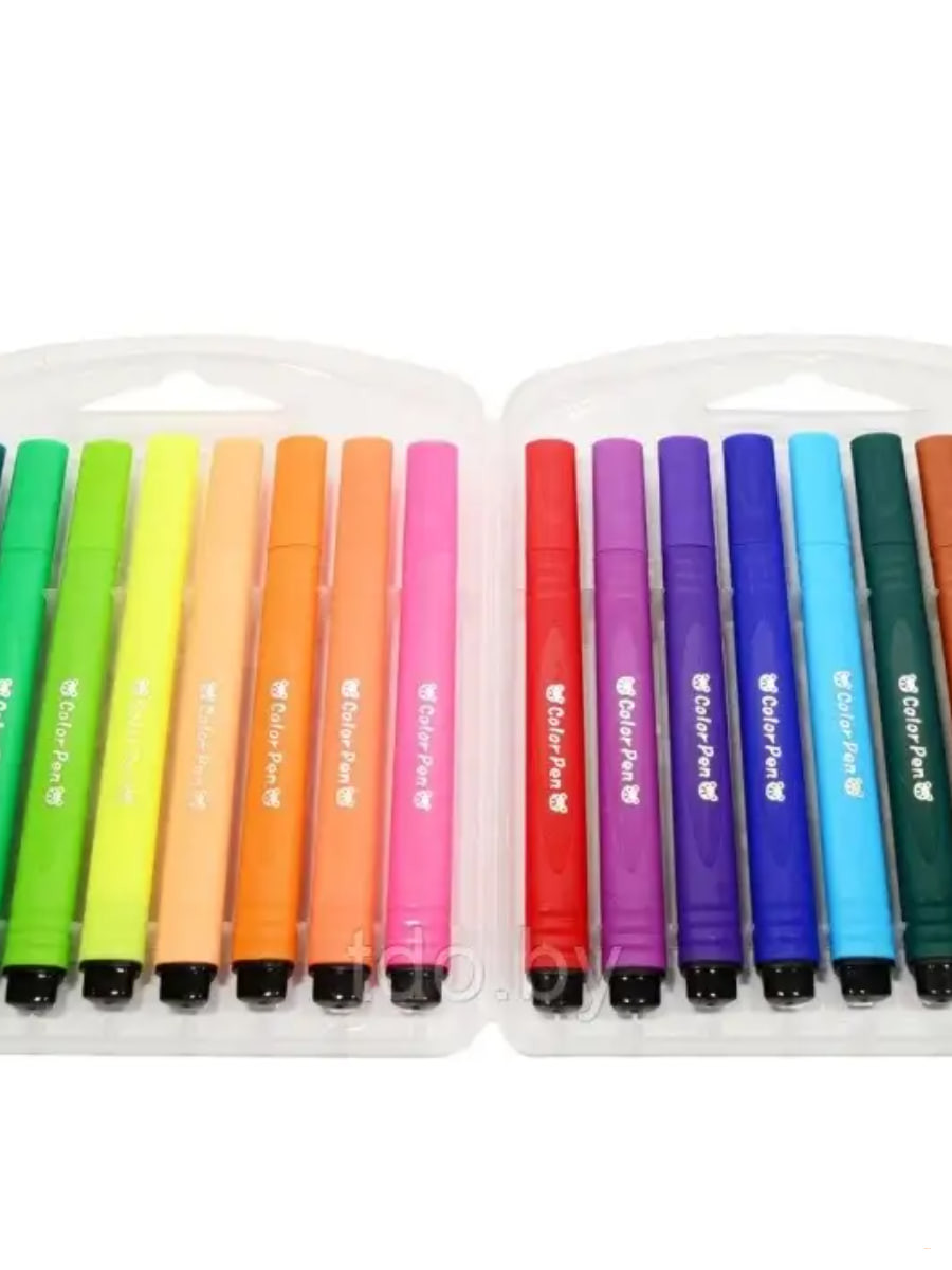 Толстые фломастеры (12/18 шт.)• Количество: 12 или 18 цветов• Тип: водные, с утолщенным корпусом• Цвет корпуса: черный• Вес упаковки: 0.3 г