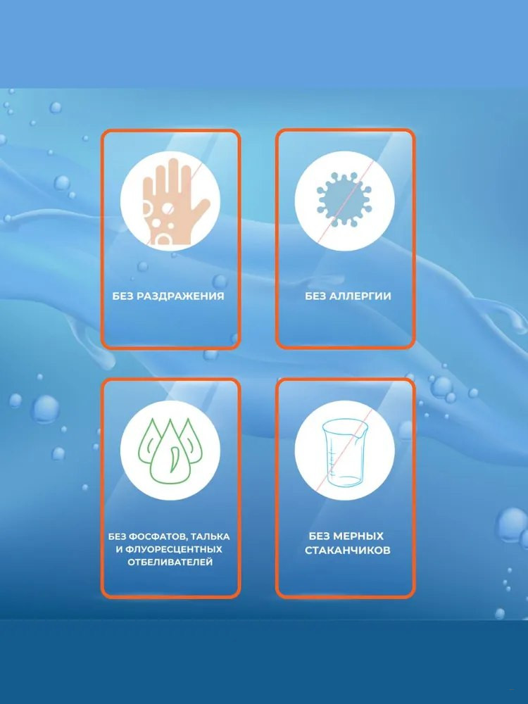 • Удобство использования — не требуют дозировки, 1 пластина = 1 стирка