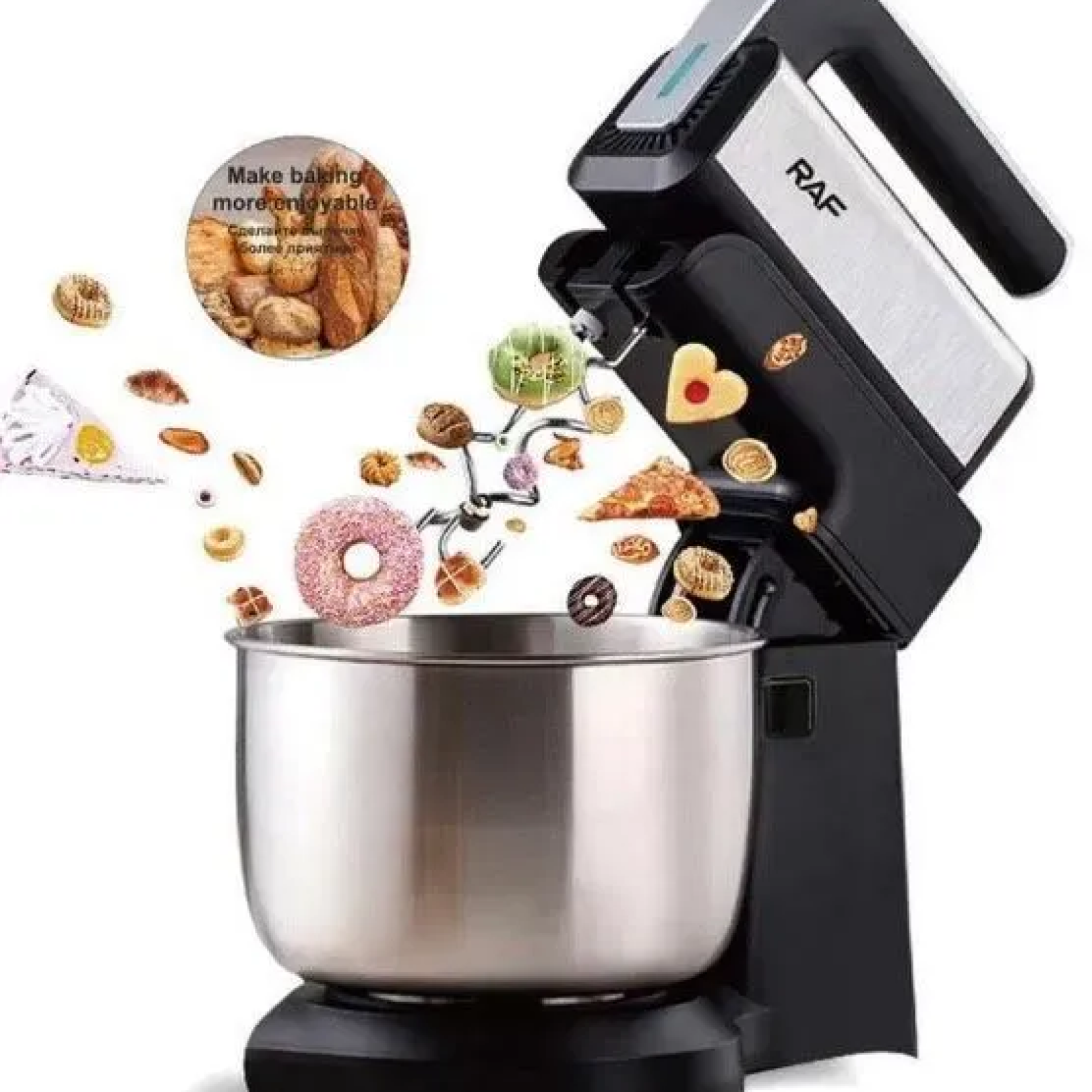 Миксер с чашей RAF R.6652 — идеальный помощник на вашей кухне. Стильная, надежная, практичная модель настольного миксера поможет вам в приготовлении кулинарных шедевров. Готовьте с удовольствием благодаря функциональному комбайну в элегантном дизайне.