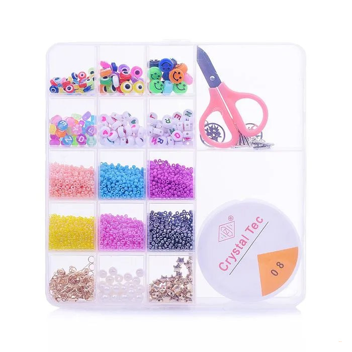 • Разноцветный бисер и бусины — 5 цветовых гамм, формы: круглые, сердечки, звездочки