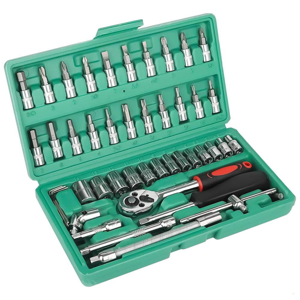 • Универсальность — 13 головок, 9 бит, 6 шестигранников, трещотка и удлинитель