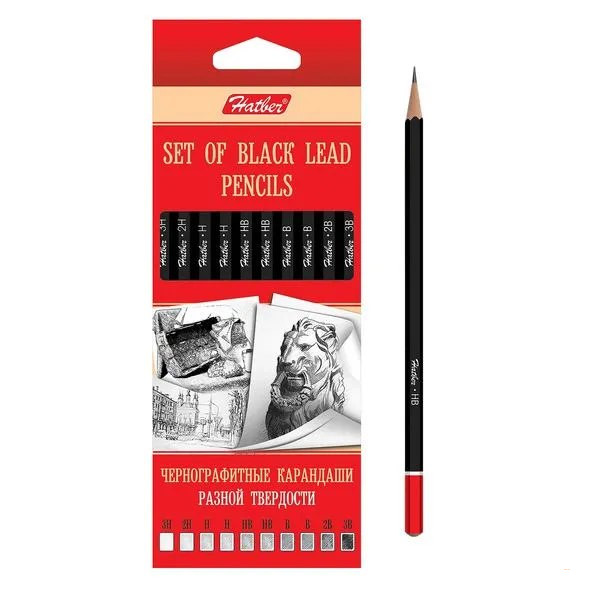 Набор чернографитных карандашей Hatber (10 шт.)• Форма: шестигранные, предварительно заточенные• Упаковка: картонная коробка• Назначение: учеба, офис, творчество