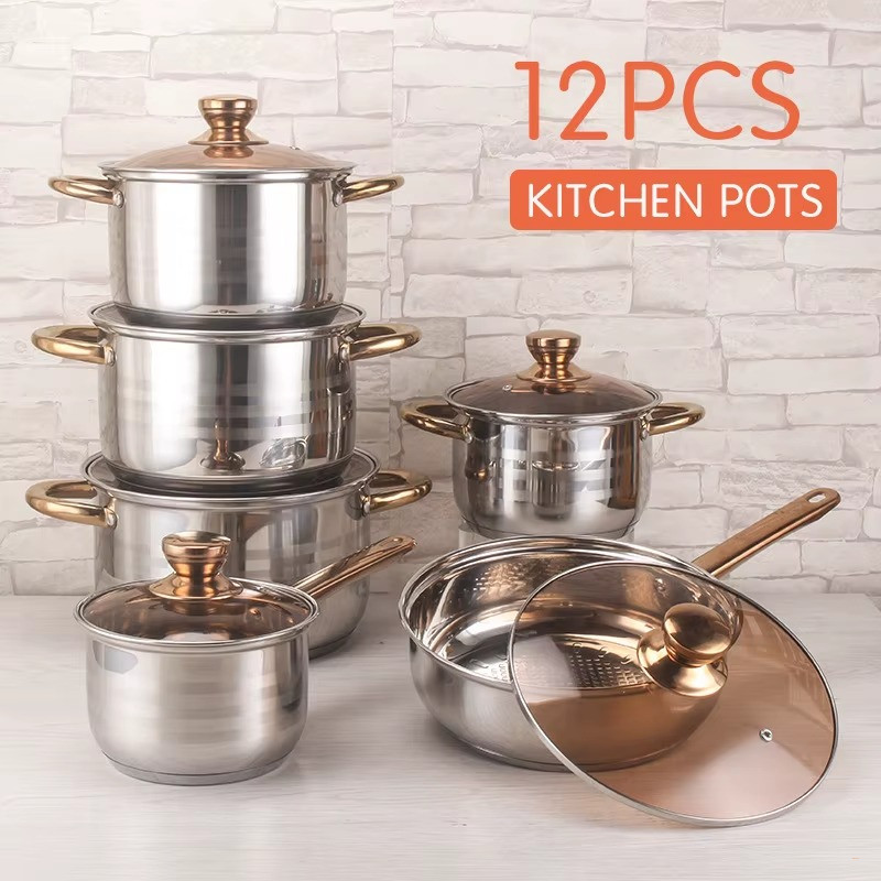 • Количество — 4 кастрюли, 1 ковш, 1 сковорода, 6 стеклянных крышек