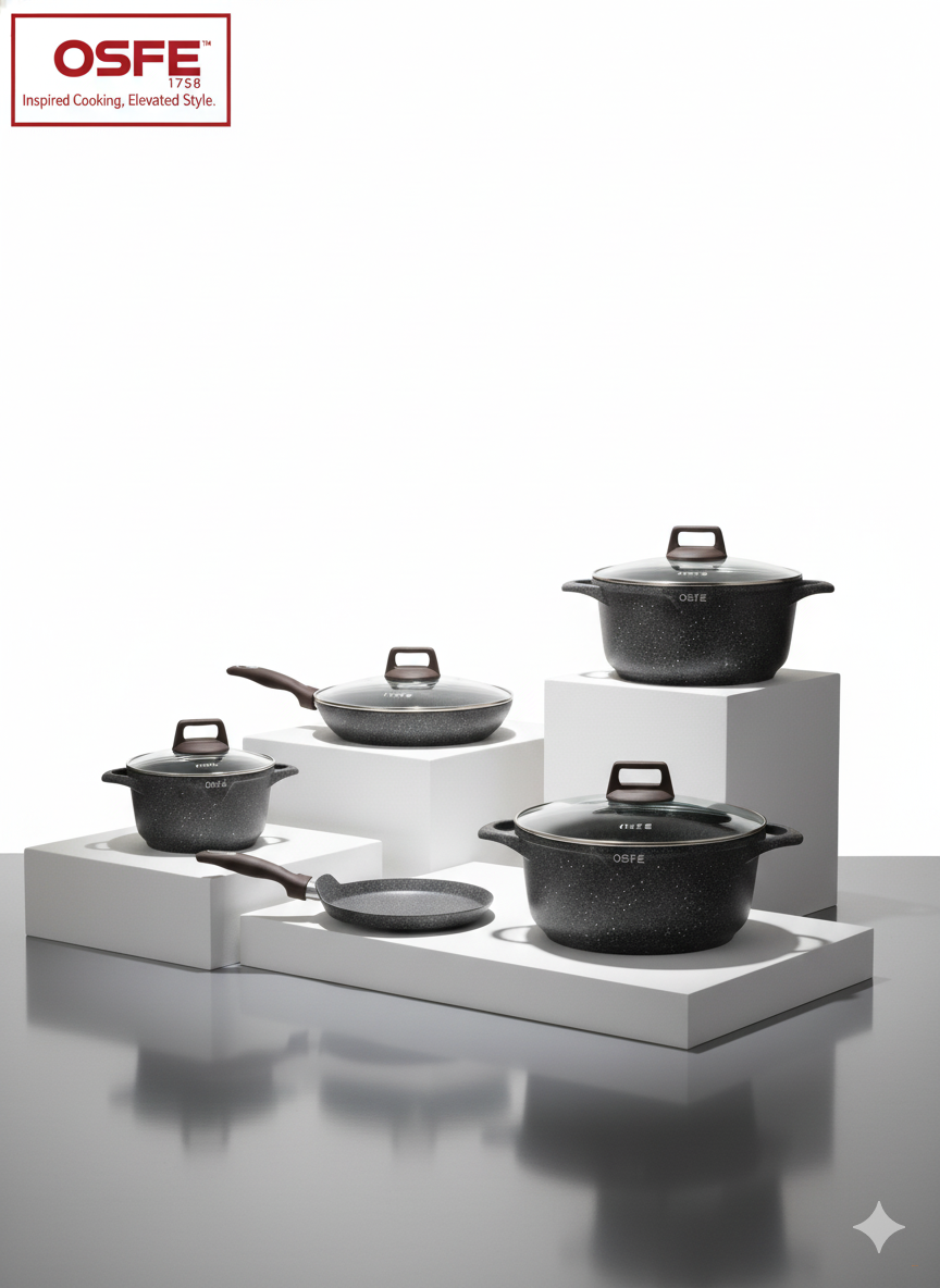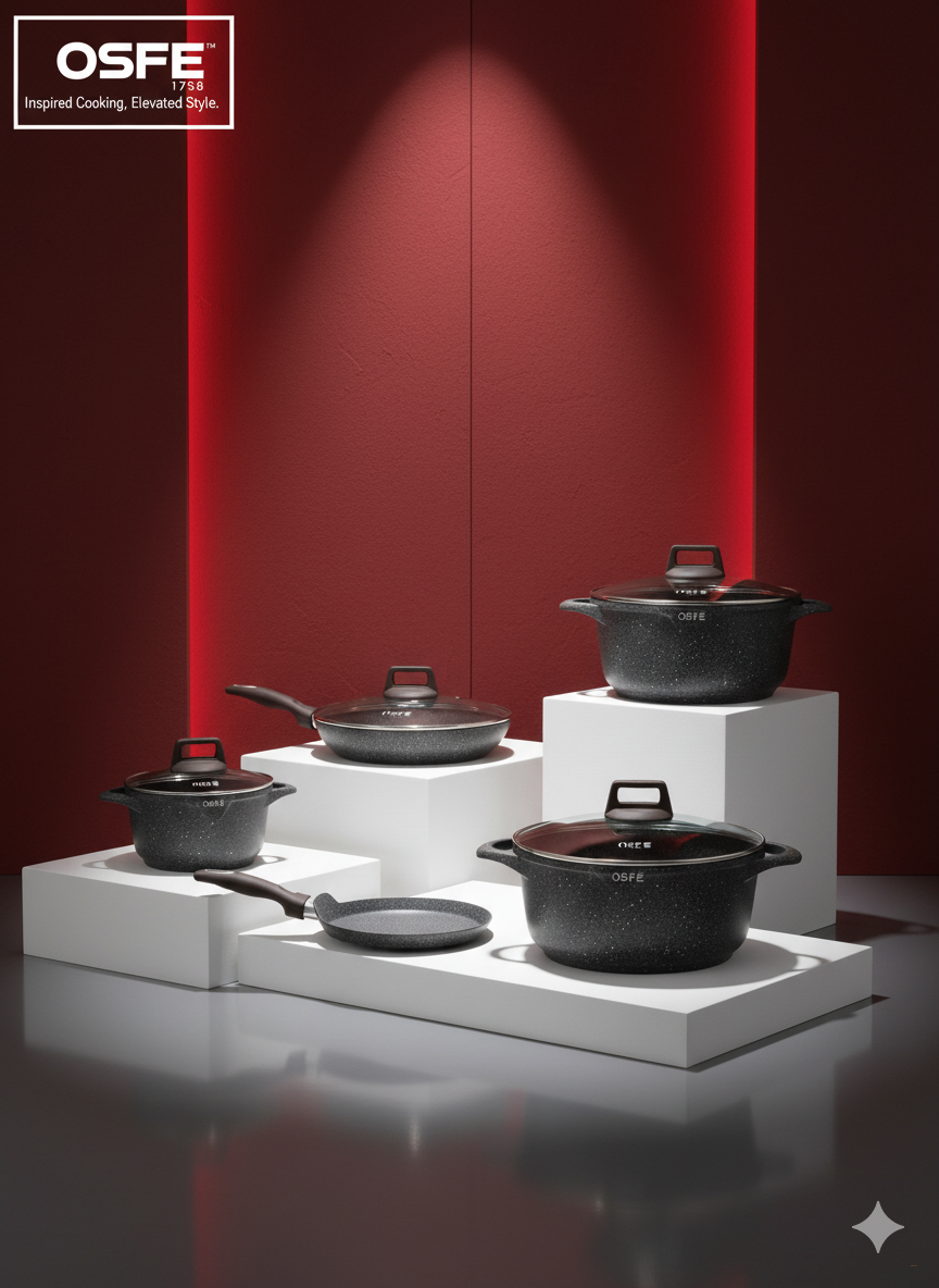 • 3 кастрюли + сковорода + пицца-сковорода — всё для готовки