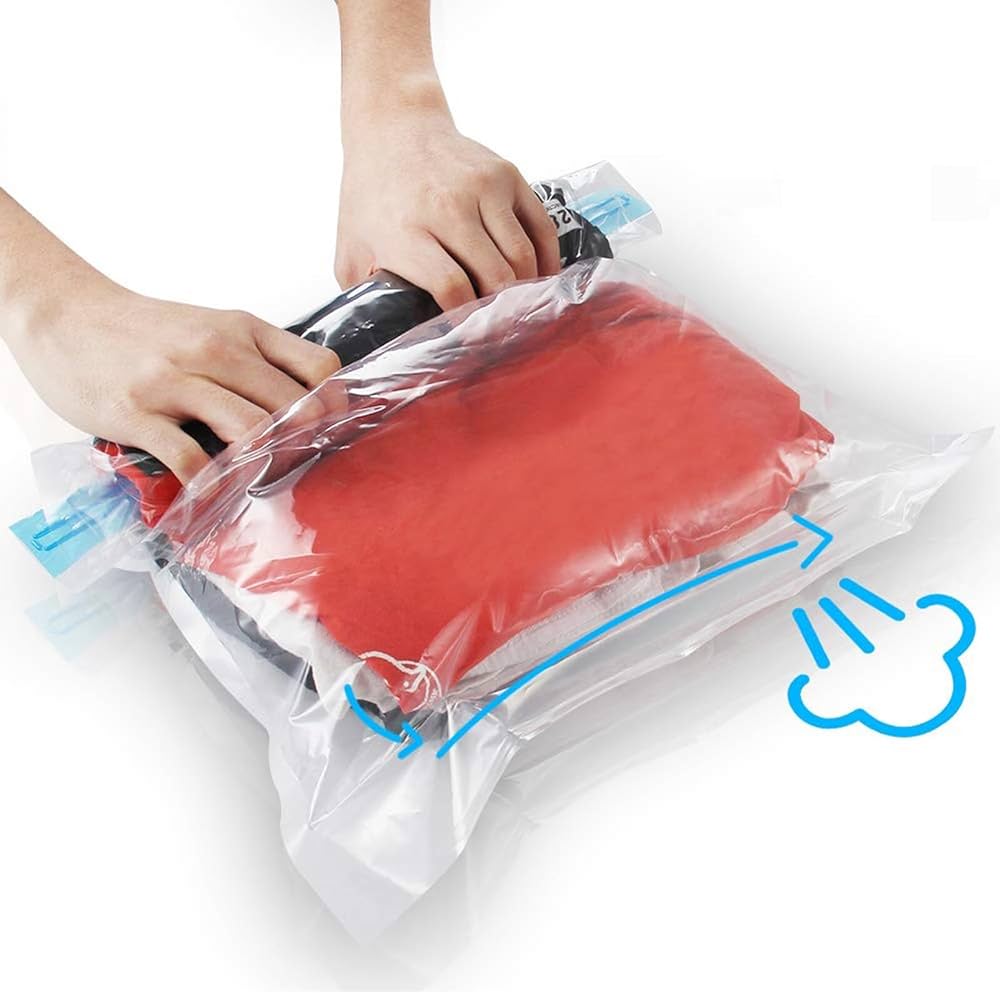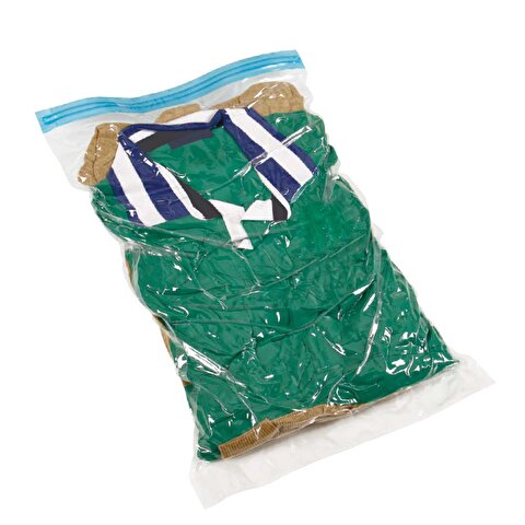 Упаковочные вакуумные пакеты скручивающиеся без клапана отлично подходят для хранения вещей таким образом, чтобы они не занимали слишком много места. В действительности, пространство, занимаемое упакованной в такой пакет одеждой, уменьшается вплоть до 50-80%. Что хранить в пакете? Зимние вещи: пуховики и куртки, шарфы и шапки. Одежду и мягкие игрушки. Постельные принадлежности: одеяла, пледы и подушки. Преимущества: Вакуумные пакеты защитят ваши вещи от влаги, плесени и моли. Прекрасно сэкономят место в чемодане. Вакуумные пакеты можно использовать многократно. Полностью герметичны. Правила по эксплуатации: Вещи должны быть сухими. Если вы положите в пакет хоть один влажный носок, то неприятный запах появится у всех вещей в пакете. Поэтому тщательно сушим вещи перед тем, как сложить их в пакет. Чтобы не повредить пакет, нужно все детали вещей, которые могут порвать пакет, спрятать внутрь или прикрыть другой одеждой. Если же всё-таки вы повредили пакет, то выручить вас может самый обычный скотч. Не забивайте пакет до отказа. А также раскладывайте вещи равномерно. В дороге можно пользоваться небольшим баллончиком спрея для разглаживания одежды, вынутой из пакета. Просто распылите его на измятую вещь. Затем дайте минуту просохнуть. Утюг не потребуется. Если вы упаковываете в вакуумные пакеты пуховые подушки и перины, не откачивайте из пакетов полностью весь воздух. Остановитесь, когда размер пакета уменьшится в два раза, так как более сильное сжатие приведет к повреждению пуховых перьев. Не храните в таких пакетах еду, кожаные и меховые изделия. Желательно каждые 6 месяцев открывать вакуумные мешки, чтобы проветрить вещи. Используйте обычный пылесос или специальный насос.