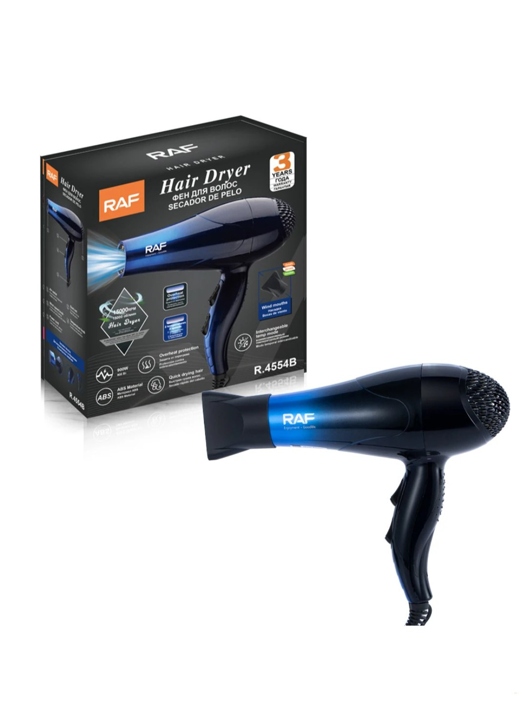 Профессиональный фен RAF R.4554B, 900 Вт