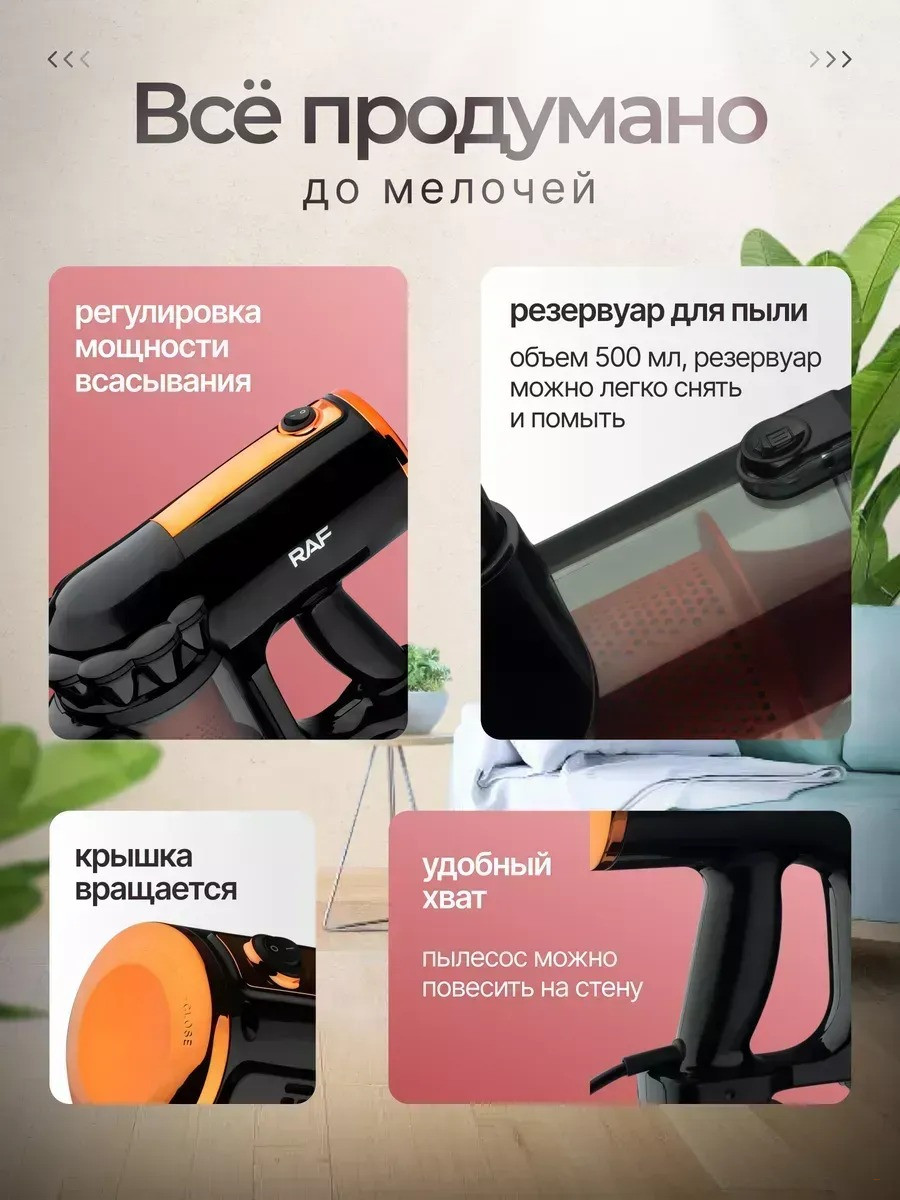 Пылесос вертикальный проводной RAF (цвет: красное золото)