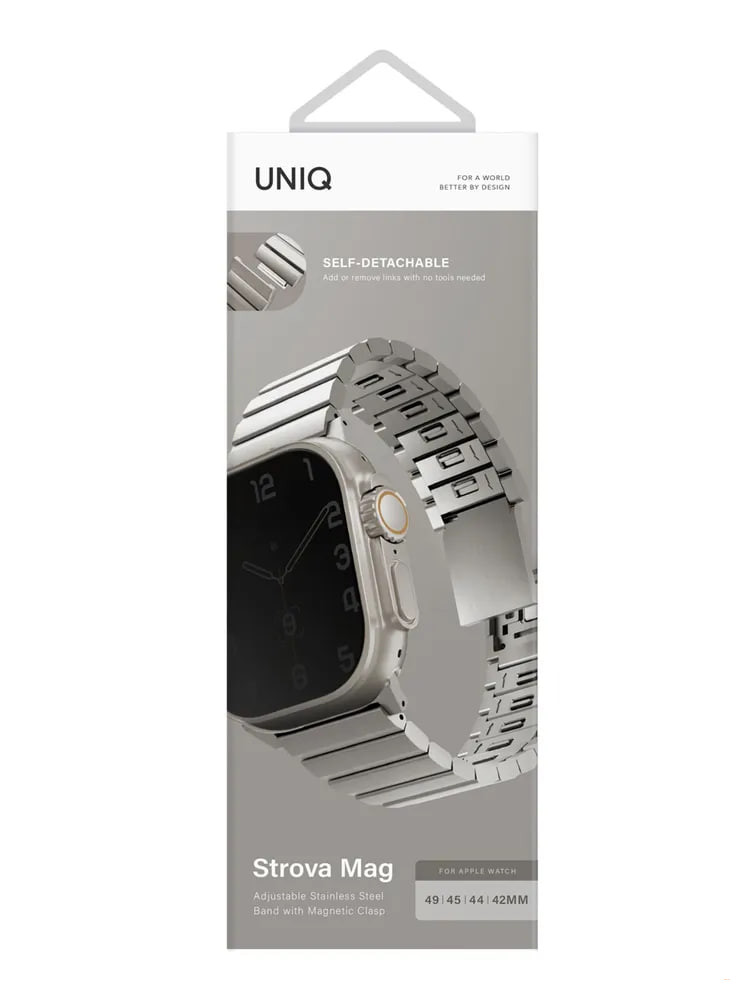 Ремешок UNIQ Strova MAG для смарт часов Apple Watch 44 45 46 49 мм из нержавеющей стали блочный с регулировкой длины и магнитной застежкой, серебристый