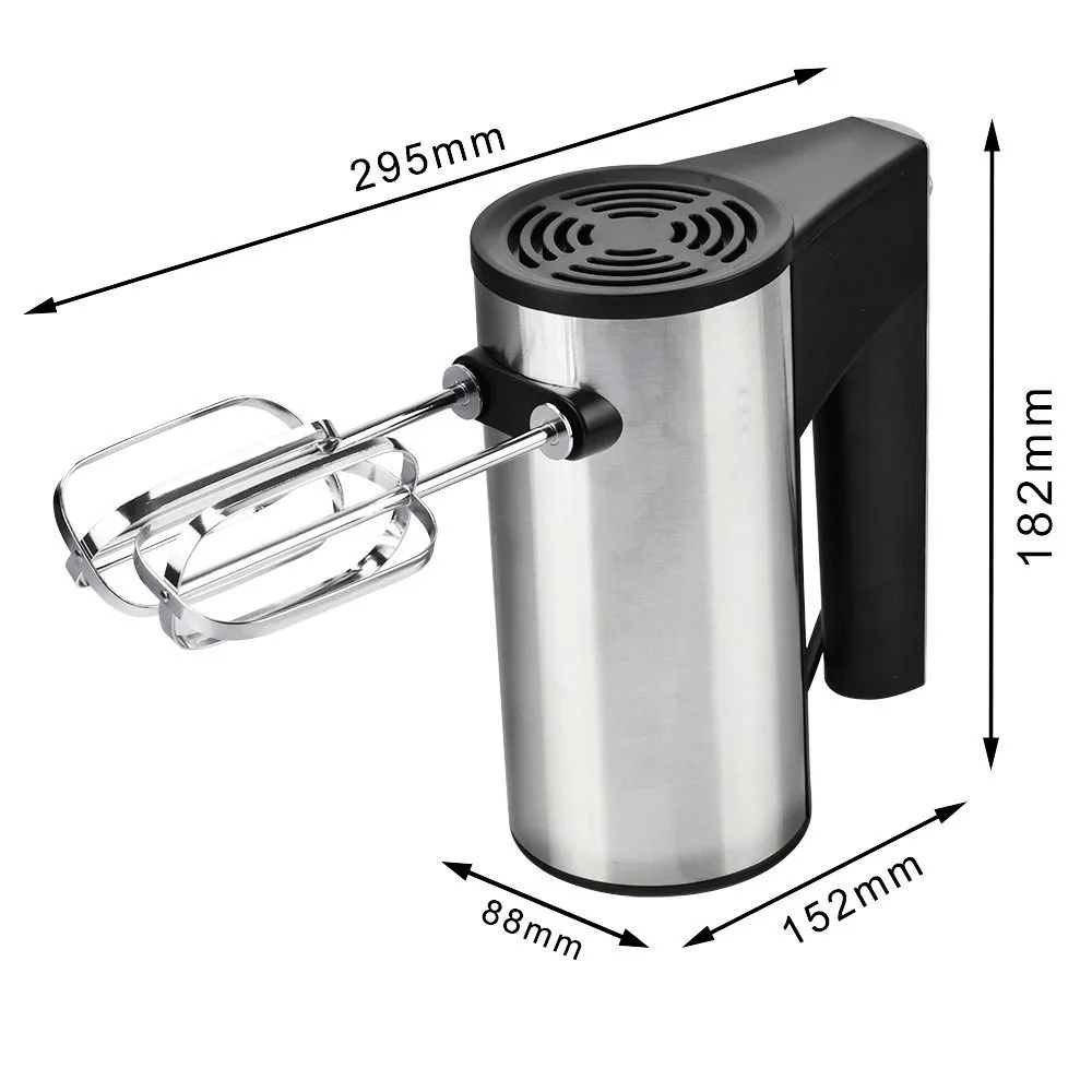 • 3 насадки в комплекте — венчик и 2 хромированных крюка для теста