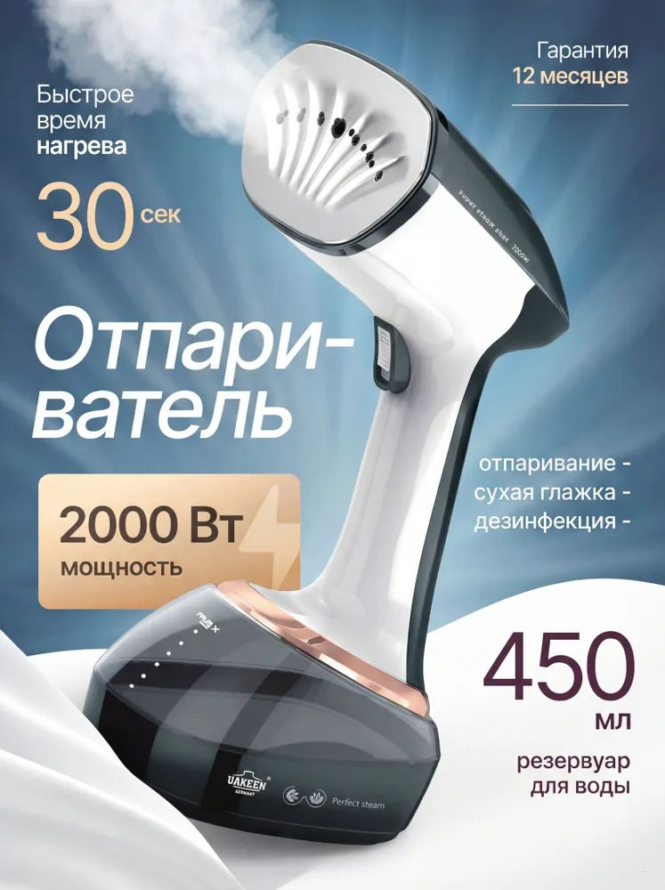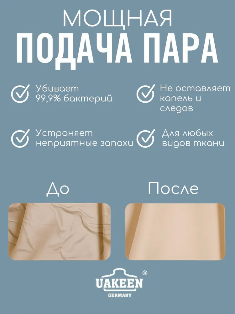 • Мощность: 2000 Вт, подача пара 25 г/мин