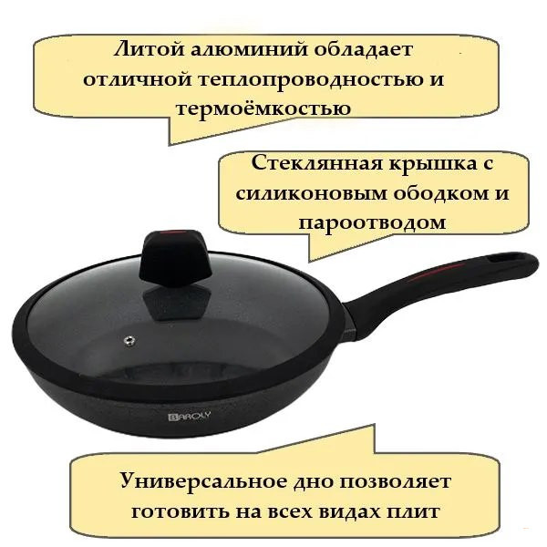 • Эргономичная ручка — удобный хват, не нагревается при готовке