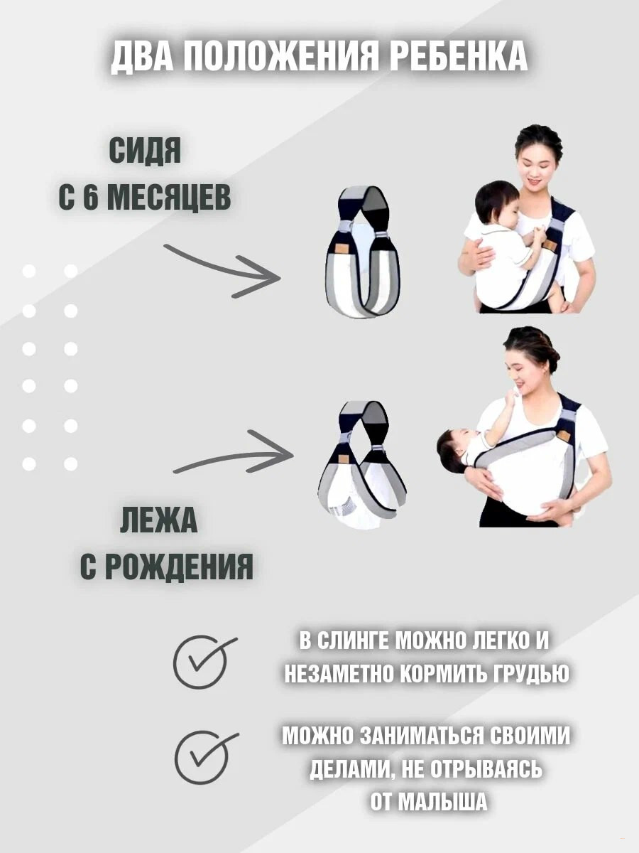 • Использование: прогулки, домашнее укачивание, грудное вскармливание