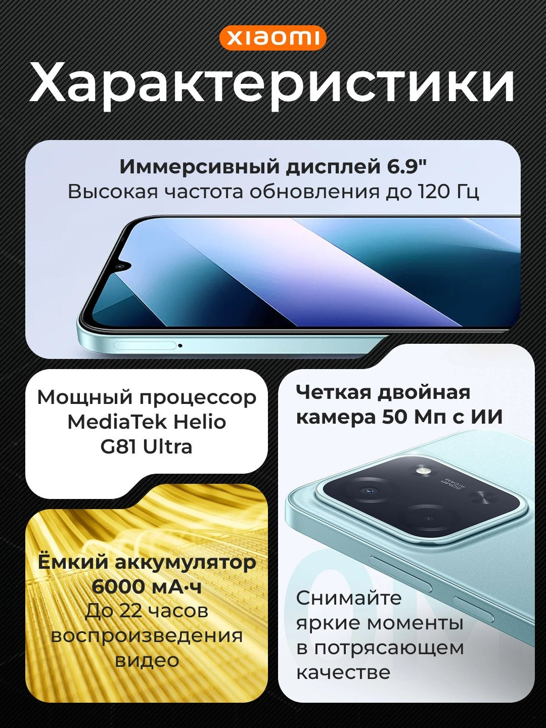 • Android 15 с HyperOS 2.0 — современная ОС с оптимизацией и новыми функциями