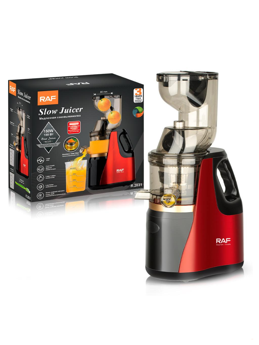 Шнековая соковыжималка холодного отжима RAF R.2831, 1500 Вт, 80 мм