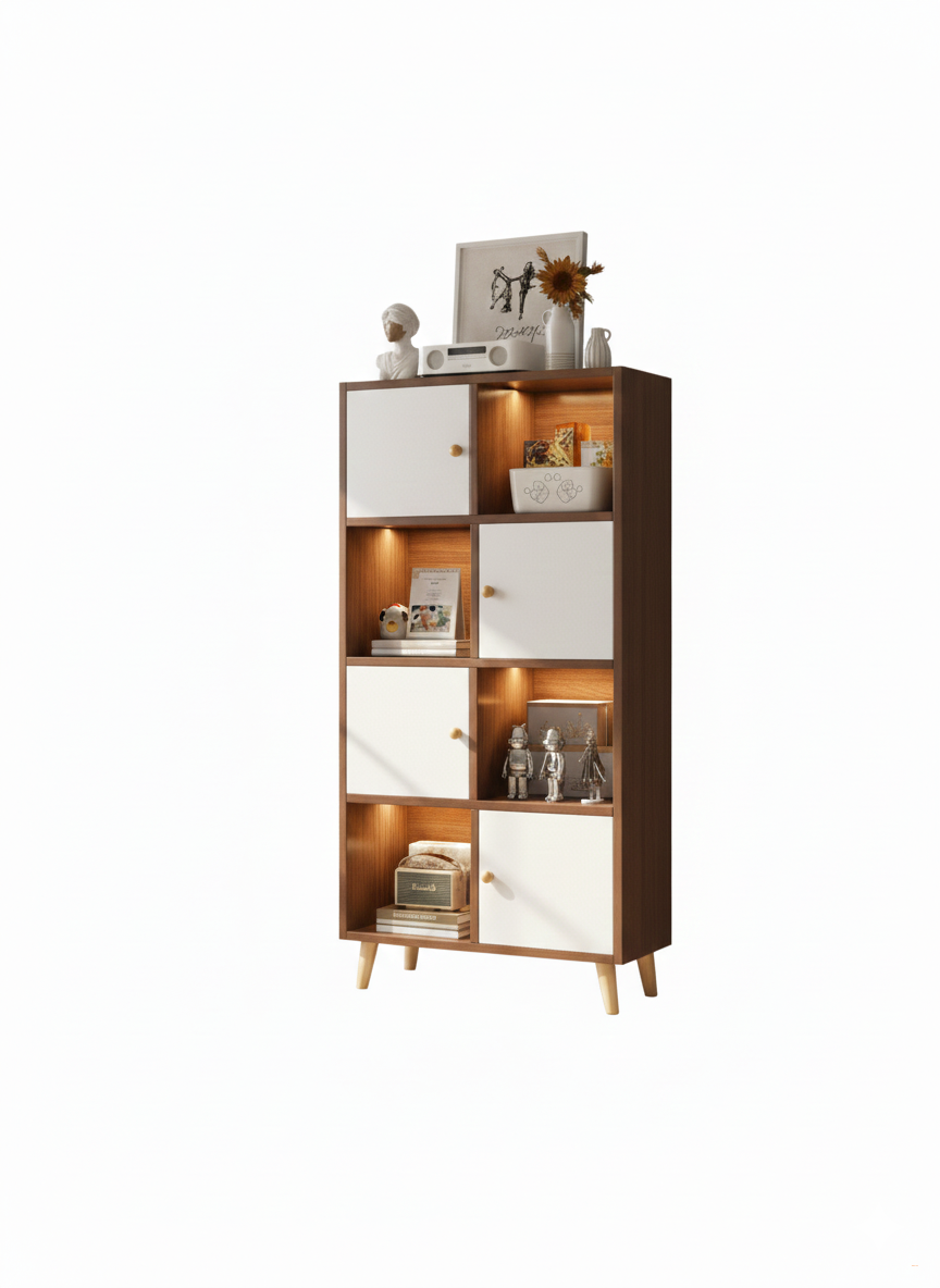 • Конструкция — 8 секций, с дверцами и открытыми полками