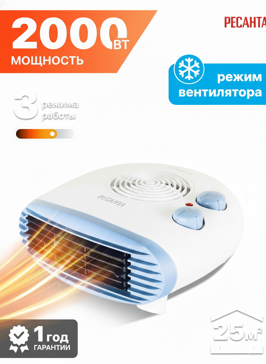 • Режимы работы: 3 уровня нагрева + вентилятор