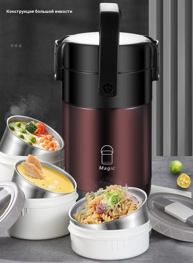 • Вакуумный корпус из нержавеющей стали — сохраняет температуру еды до 8 часов