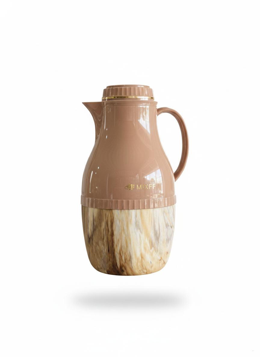 • Стильный двухцветный дизайн — верх из гладкого бежевого пластика с золотой полосой, низ — мраморный принт «под дерево»