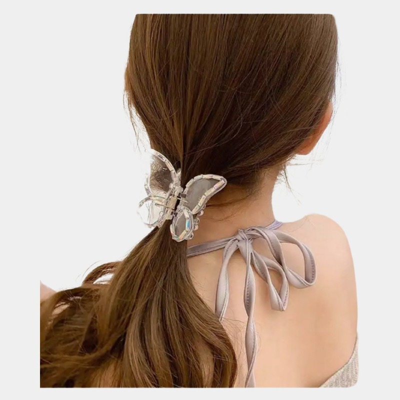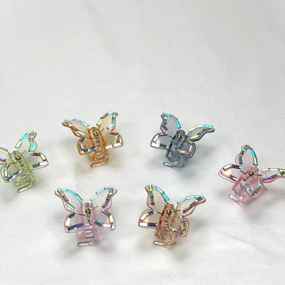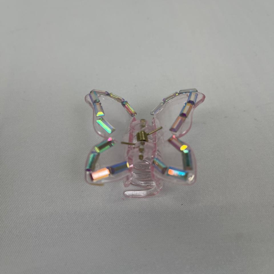 Заколка бабочка для волос, прозрачная, с камушками 4см