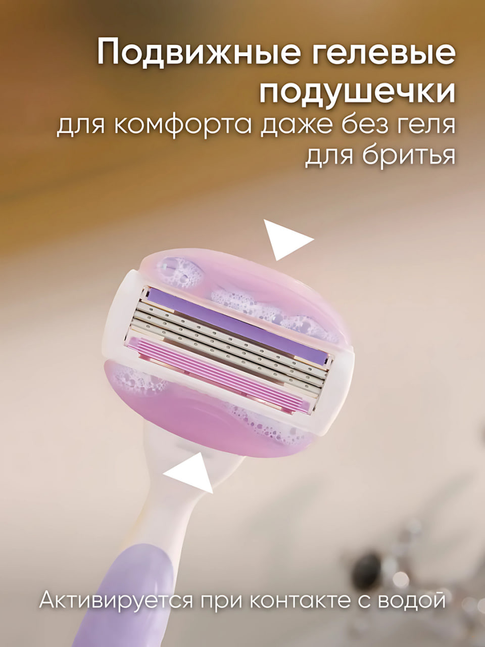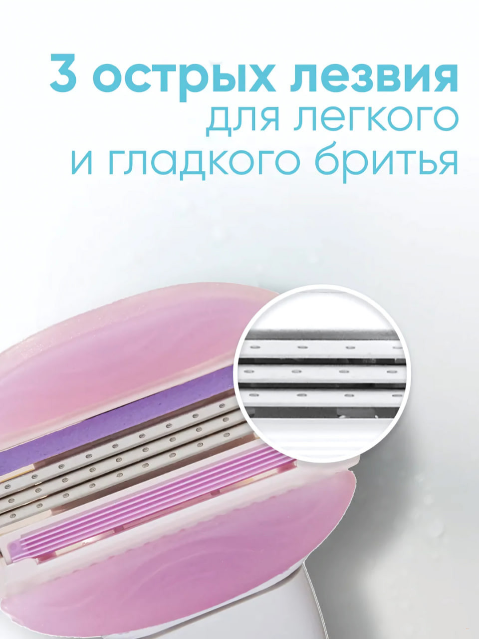 Женская бритва ComfortGlide Spa Breeze• Конструкция: 3 лезвия с увлажняющими подушечками• Аромат: белый чай• Материал: пластик• Размеры: 14 × 3.5 см